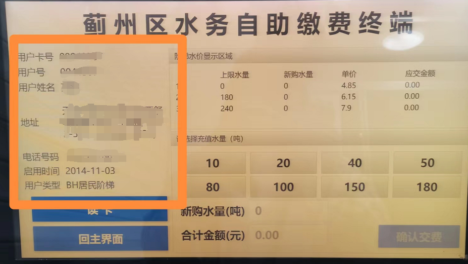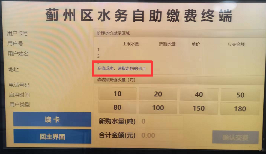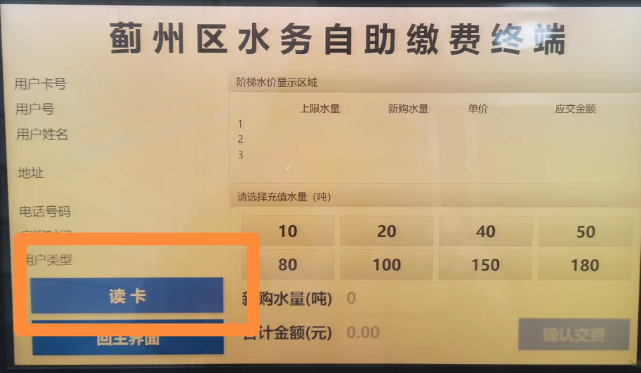 2、繳費(fèi)機(jī)繳費(fèi):將水卡放到讀卡區(qū),如圖