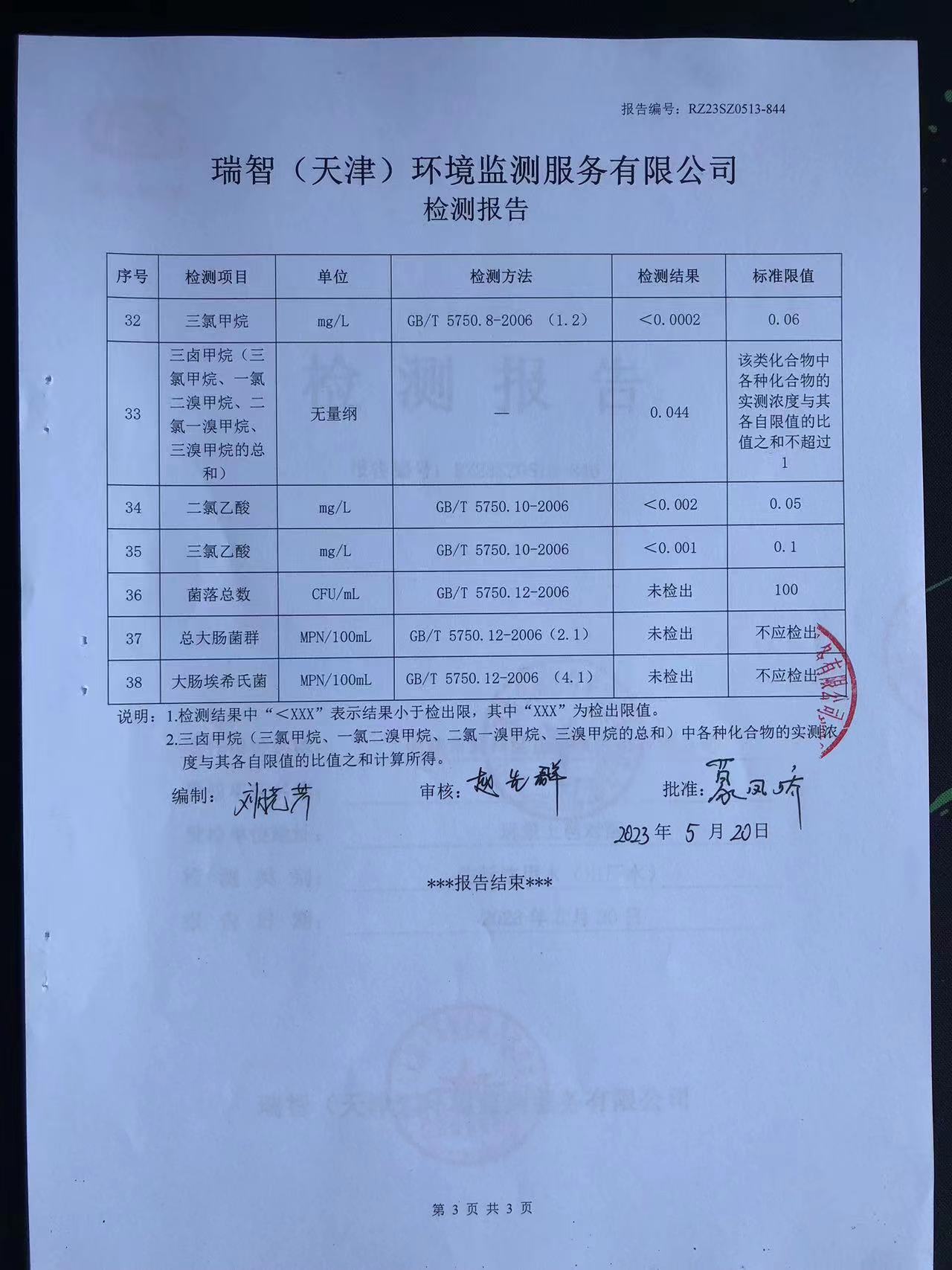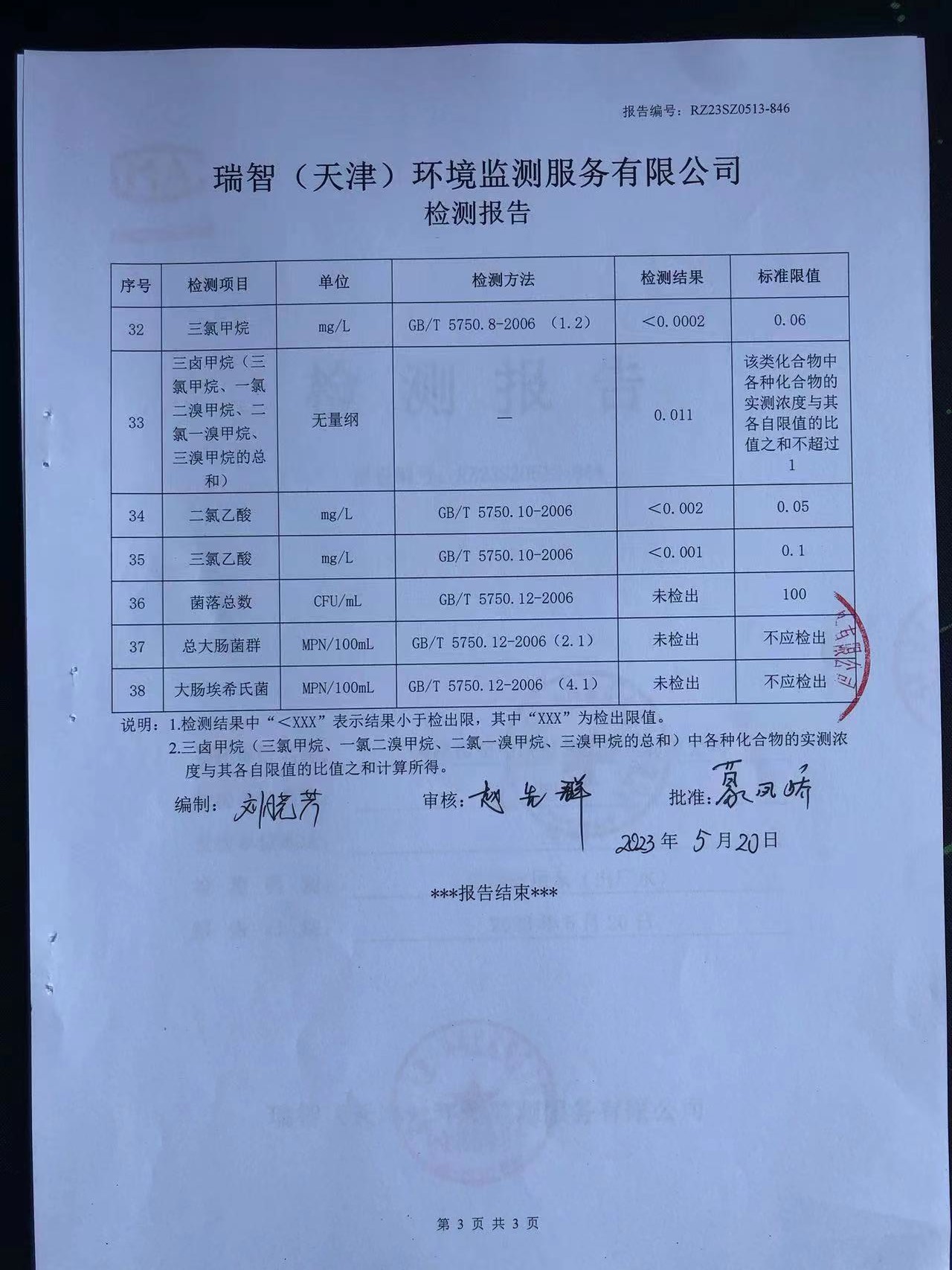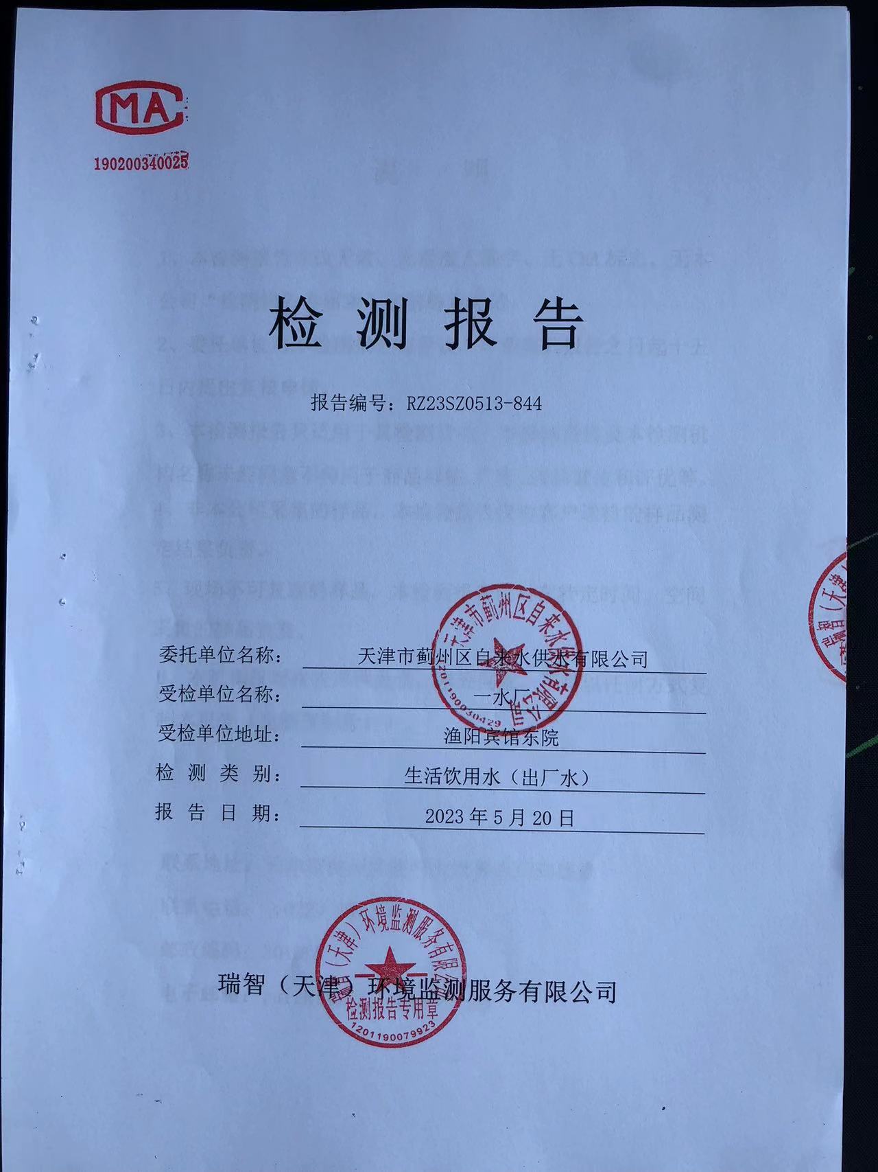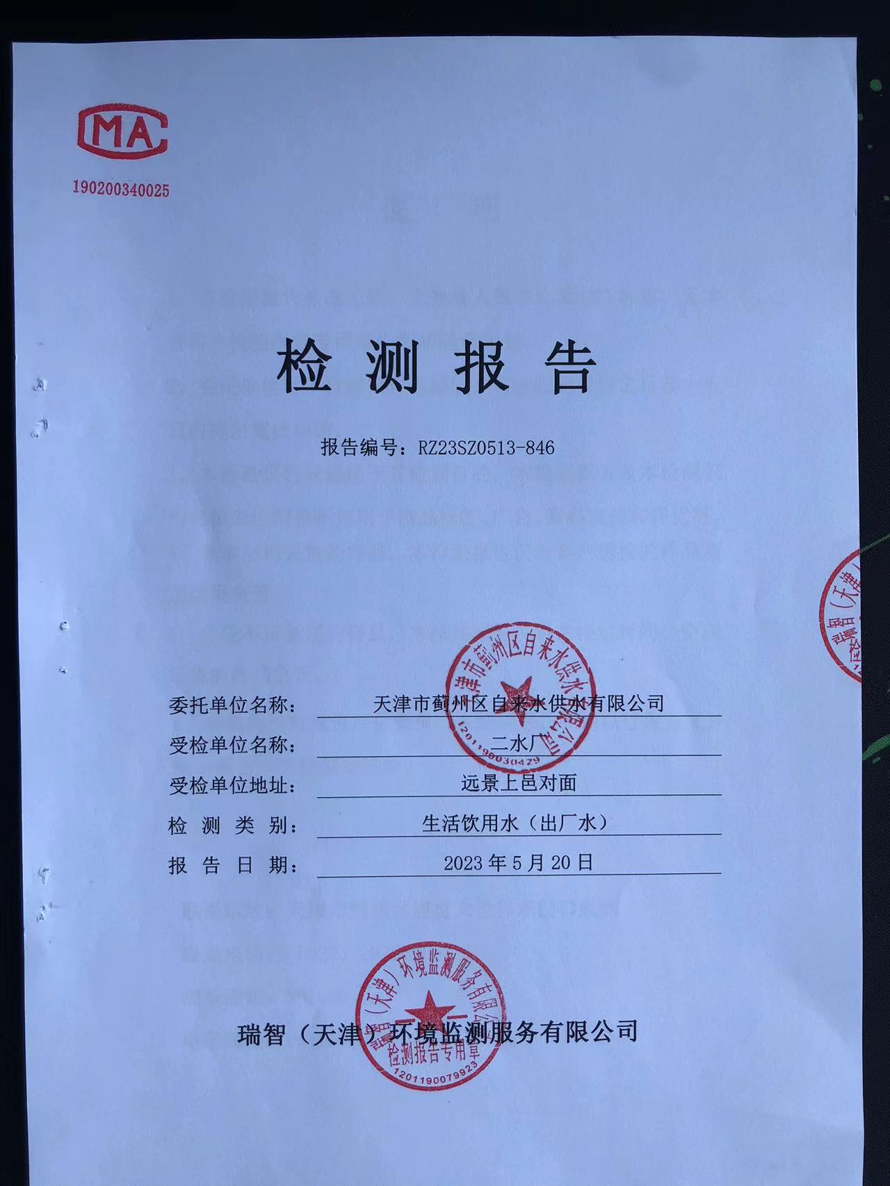 2023年5月份水質(zhì)檢測(cè)報(bào)告