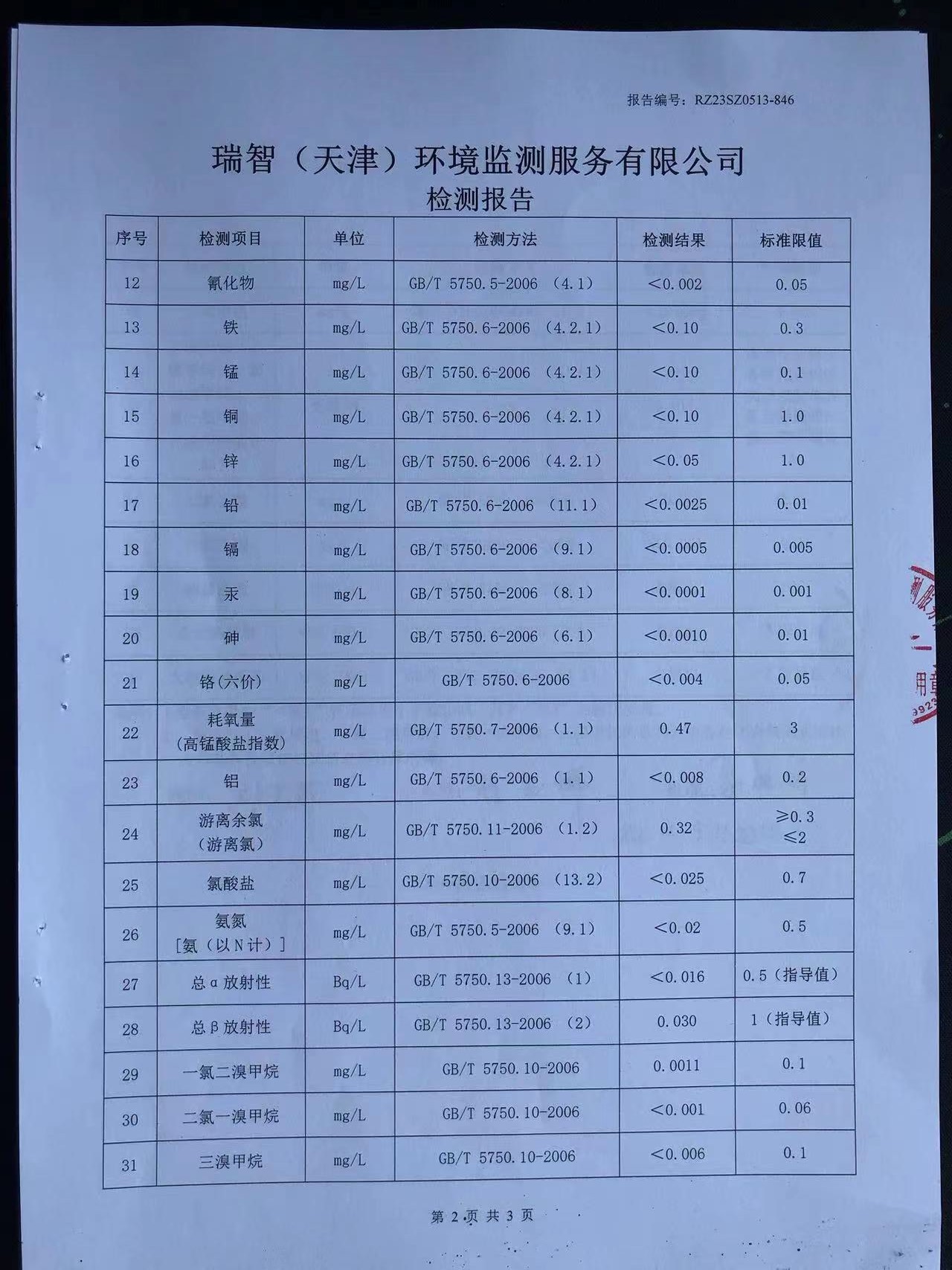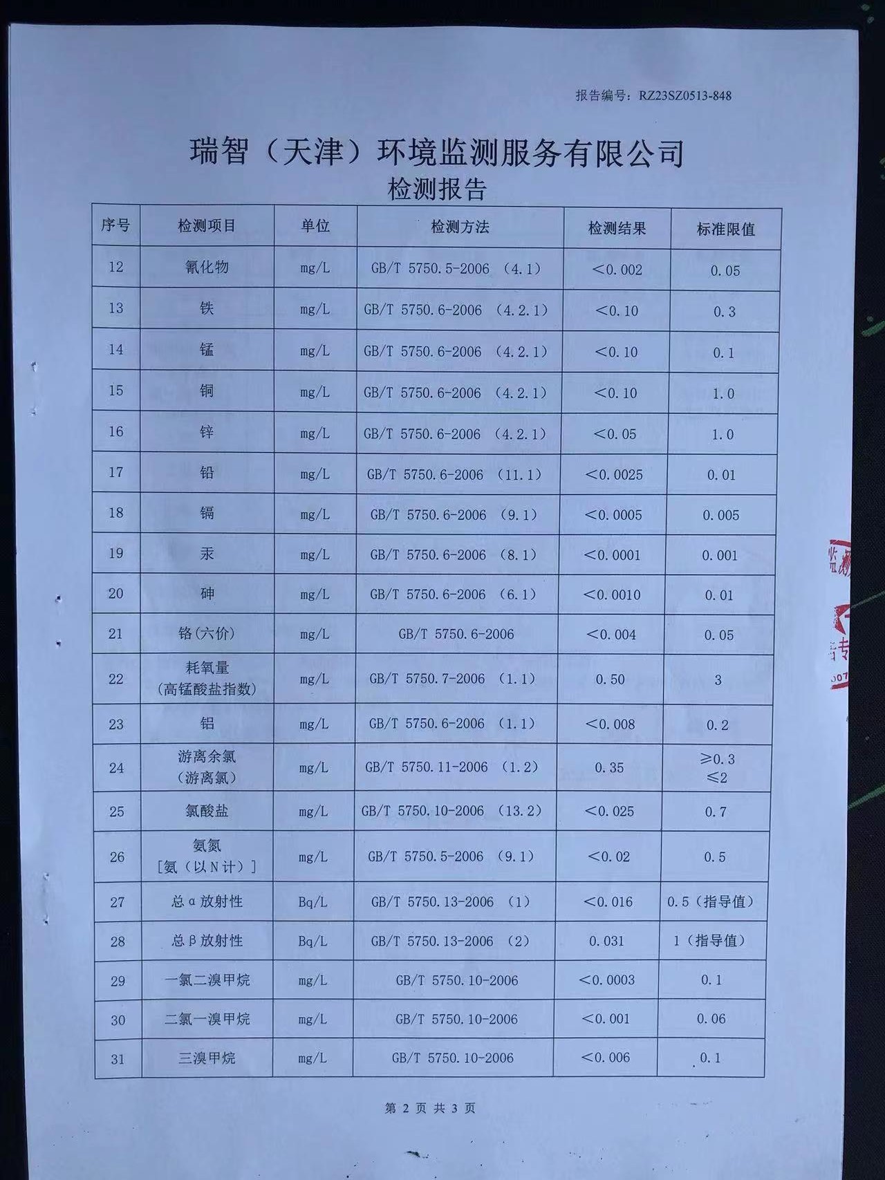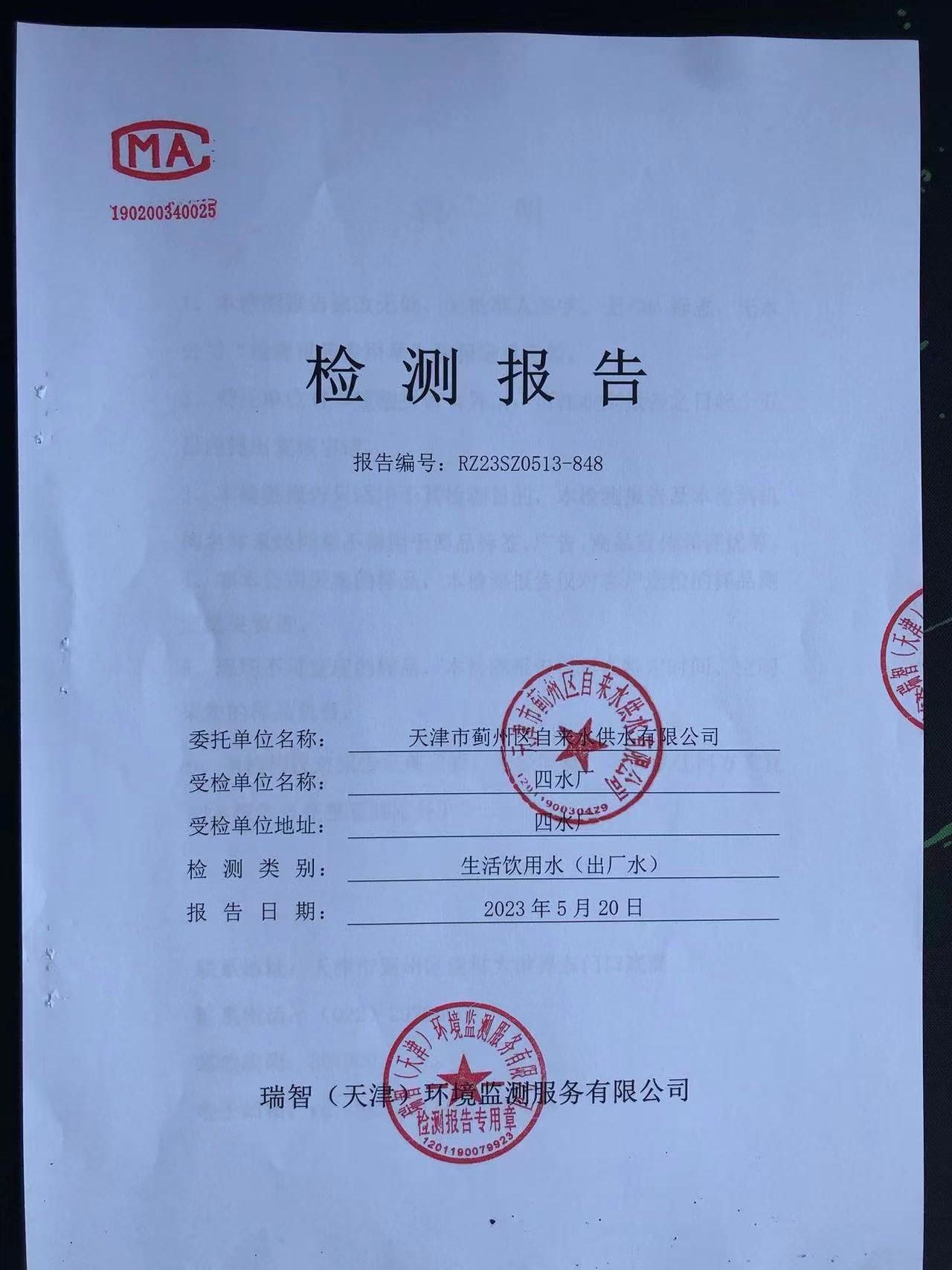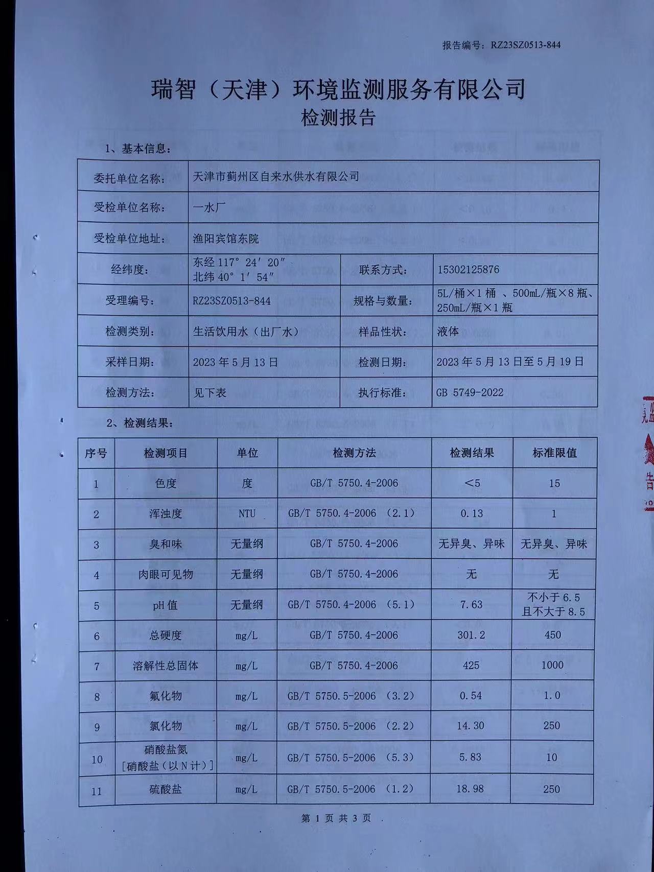 2023年5月份水質(zhì)檢測(cè)報(bào)告