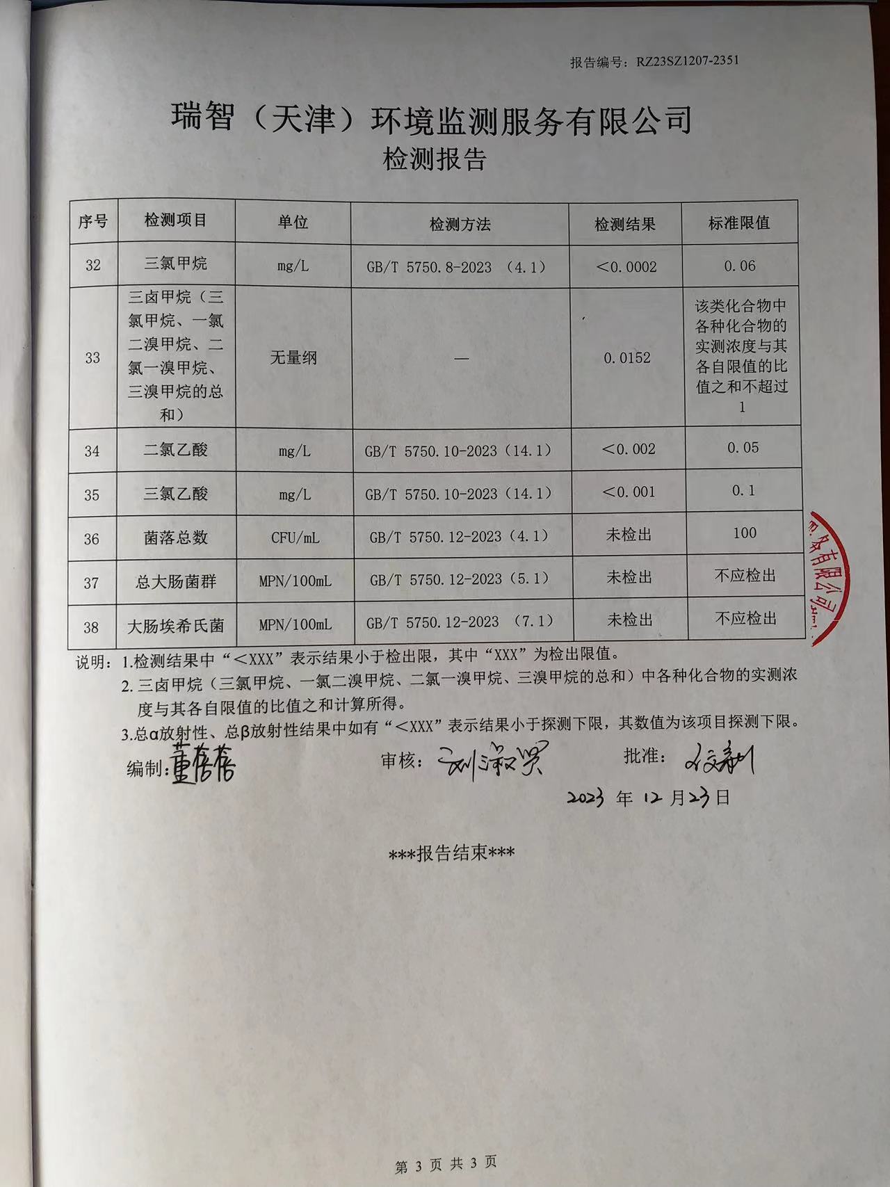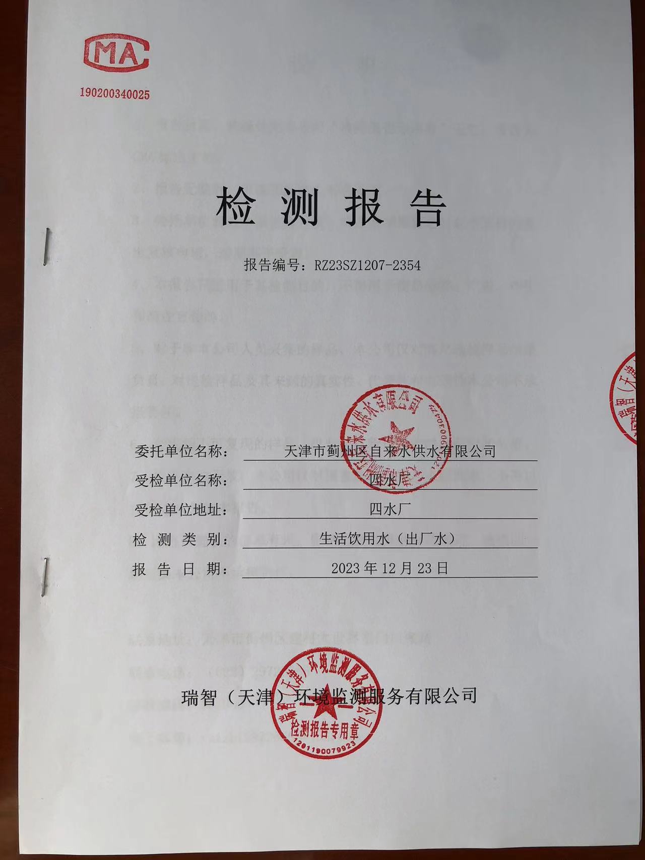 2023年12月份水質(zhì)檢測(cè)報(bào)告