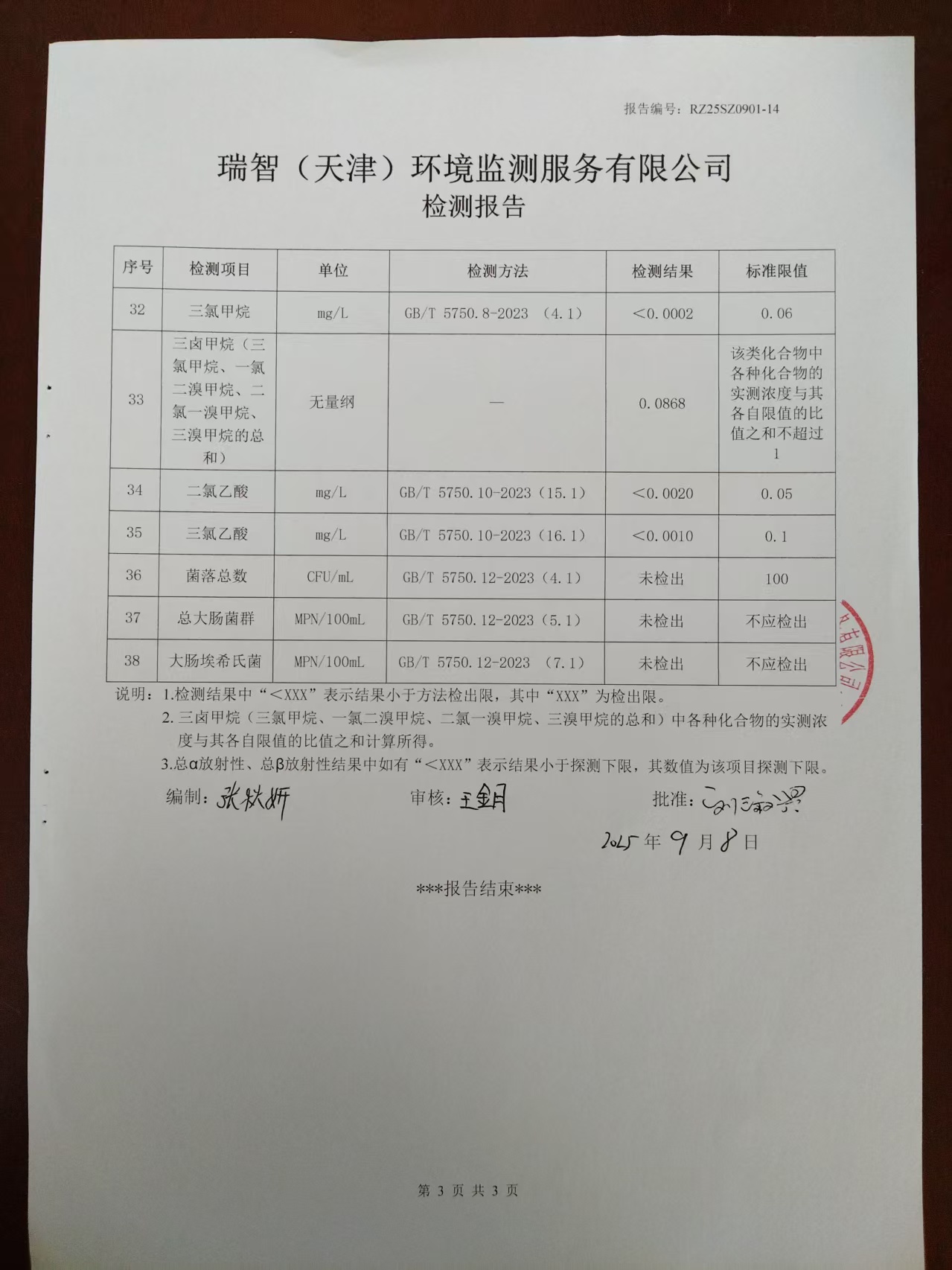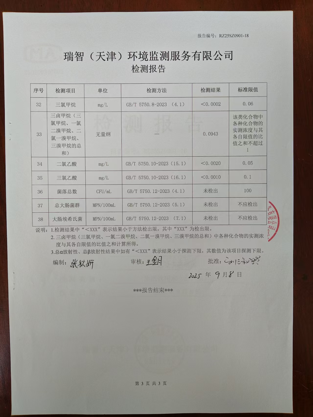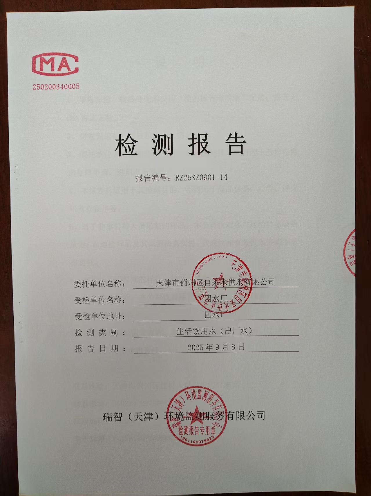 2025年9月份水質(zhì)檢測(cè)報(bào)告