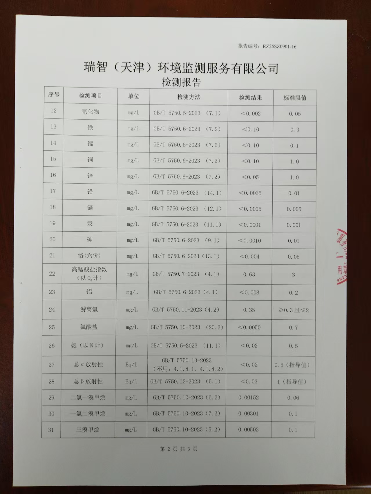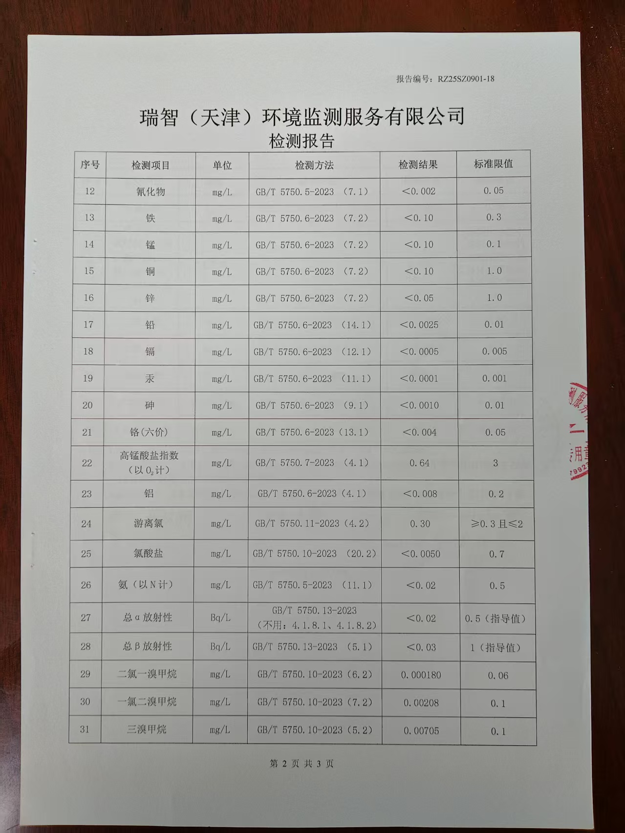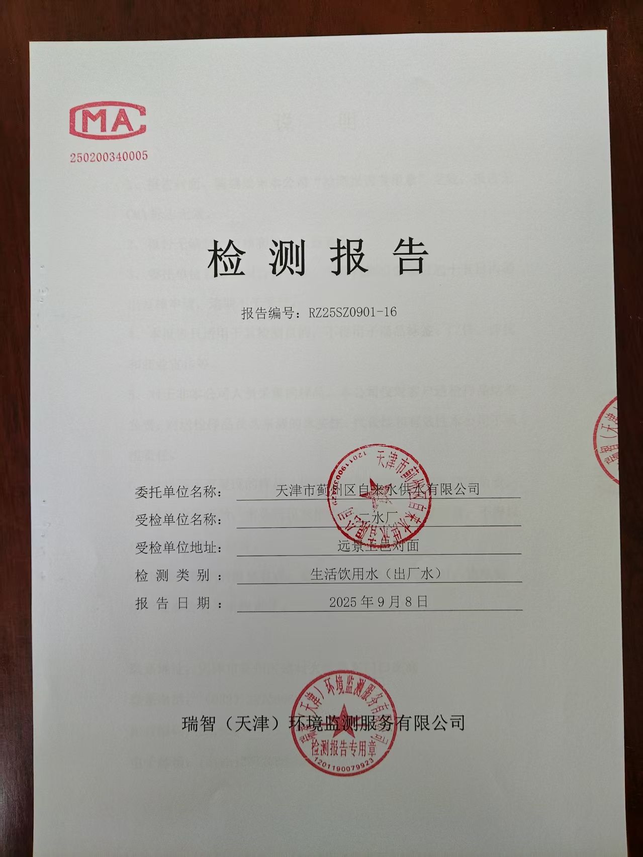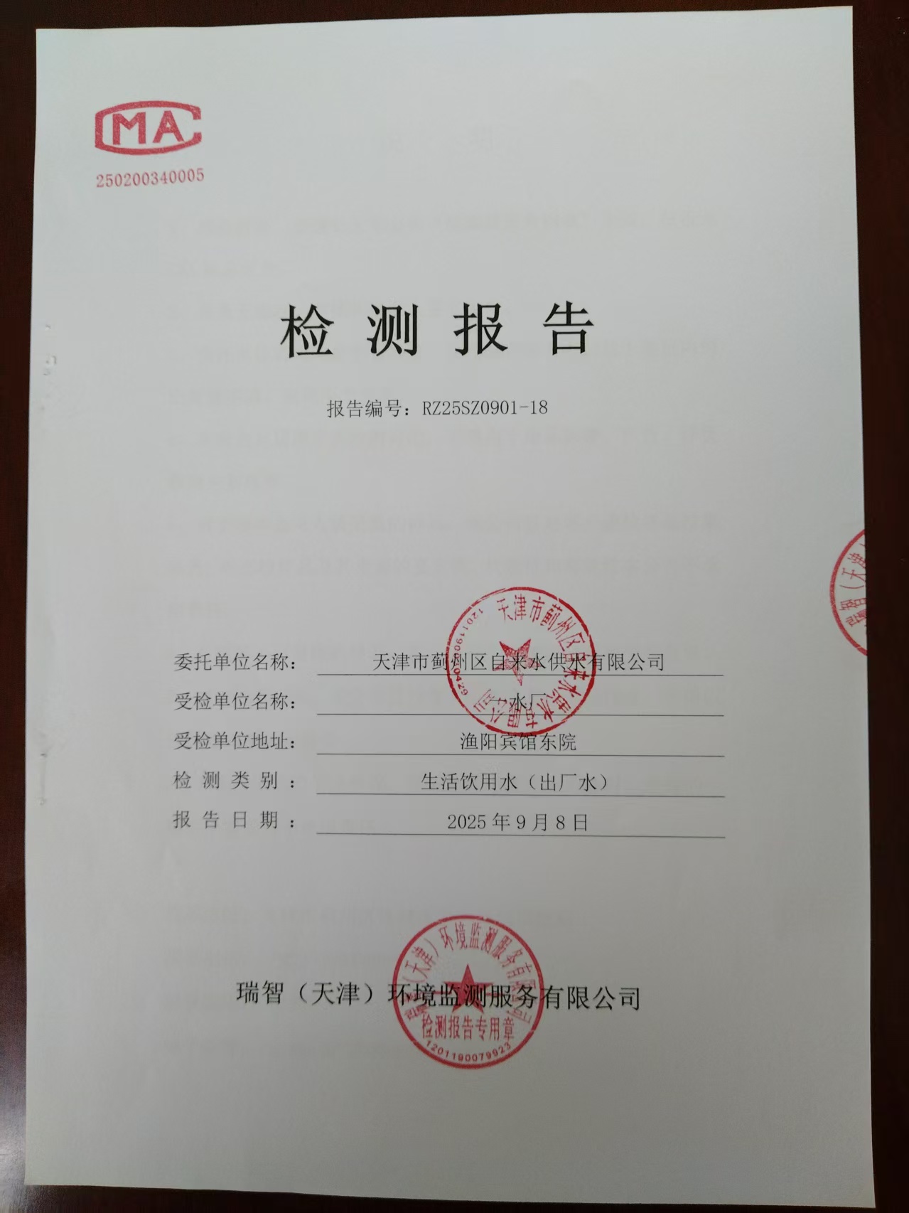 2025年9月份水質(zhì)檢測(cè)報(bào)告