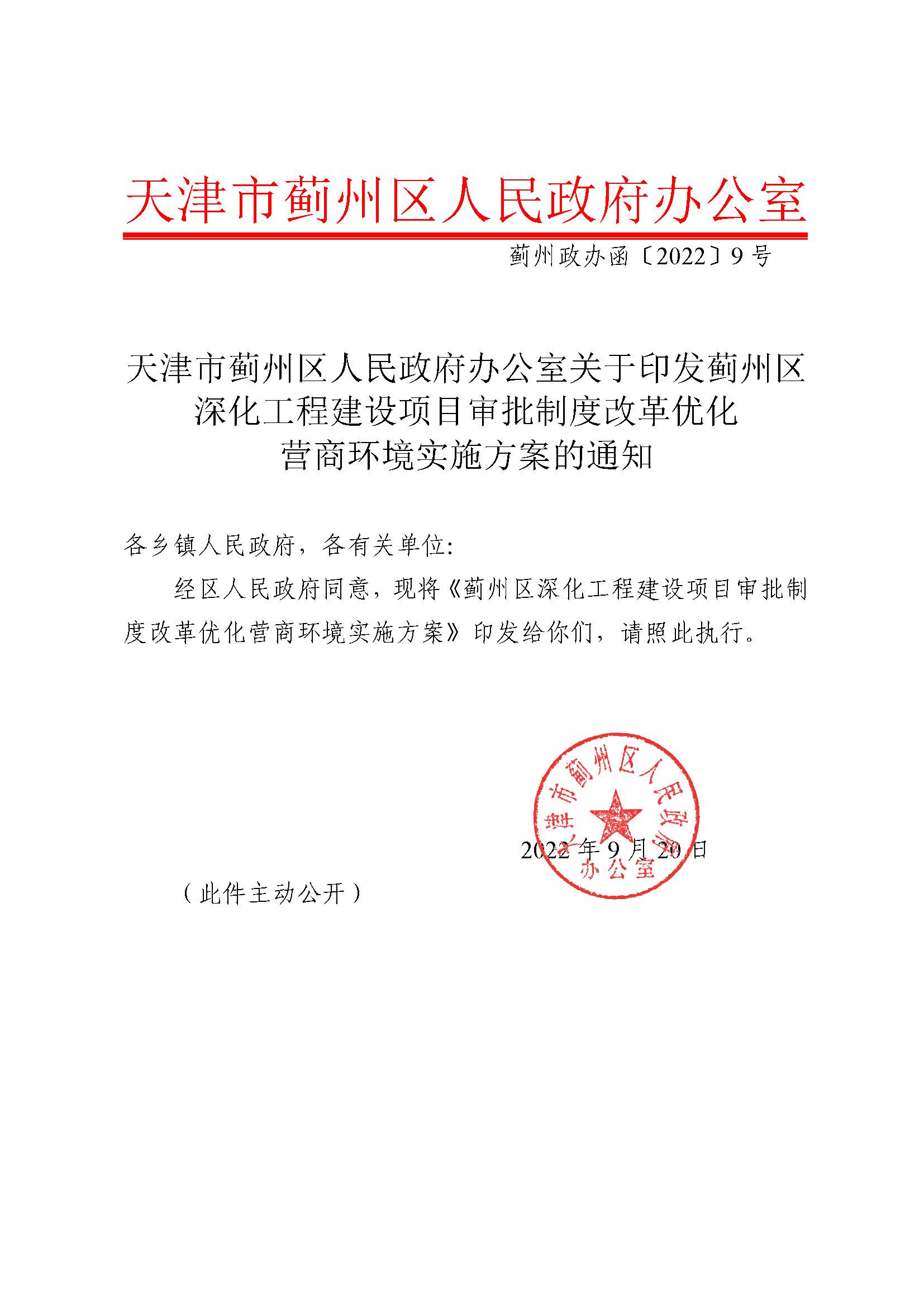 薊州區(qū)優(yōu)化營商環(huán)境實(shí)施方案的通知